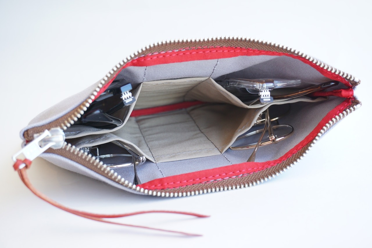 メガネを複数本入れ、持ち運ぶことができるポーチ。