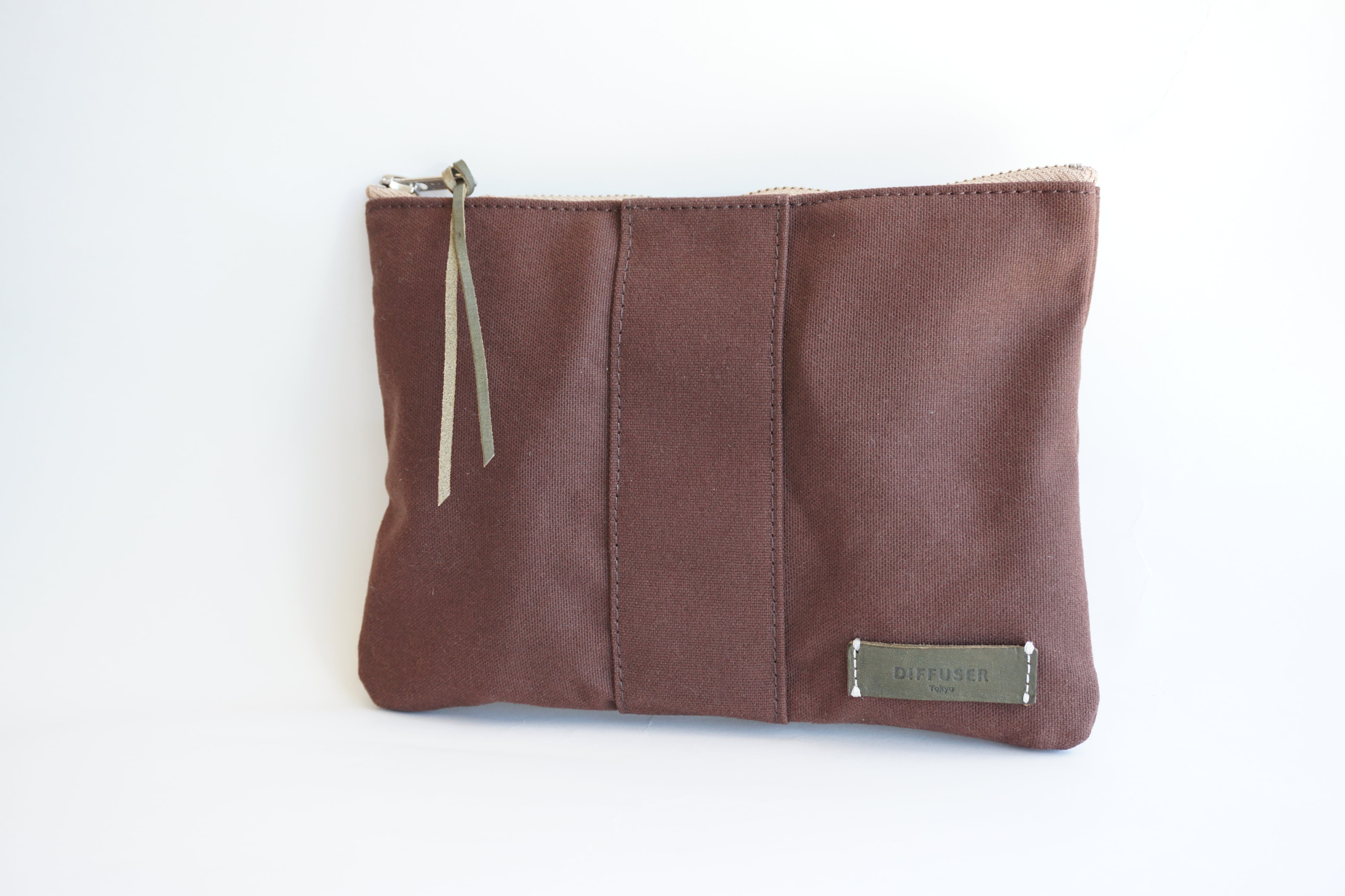 DIFFUSER : VERSATILE CANVAS POUCH / Dark Brown & Green Leather (inside Green)(AY)