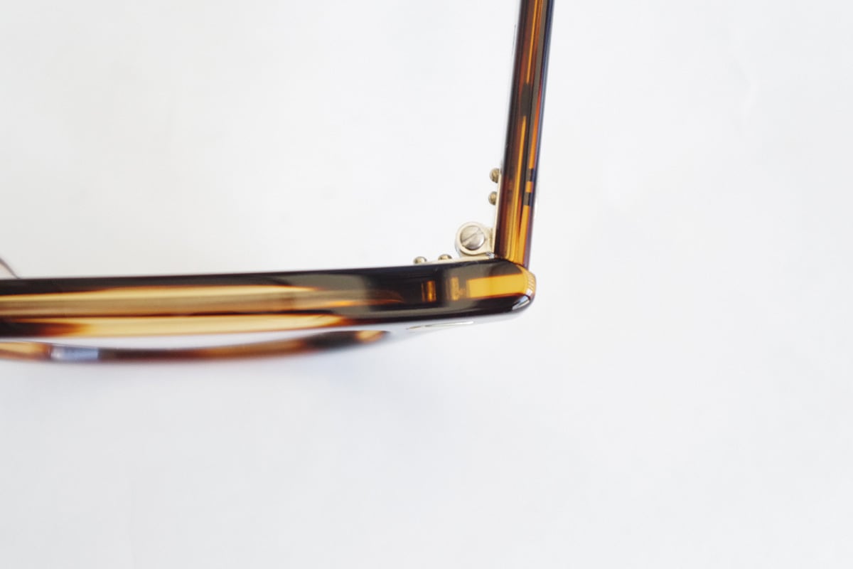 1950年頃、メガネには様々なサイズがありフロントとテンプルが別売でした。それぞれのサイズに合わせフロントとテンプルを選び組み合わせていた為、合い口を面一で仕上げることができませんでした。