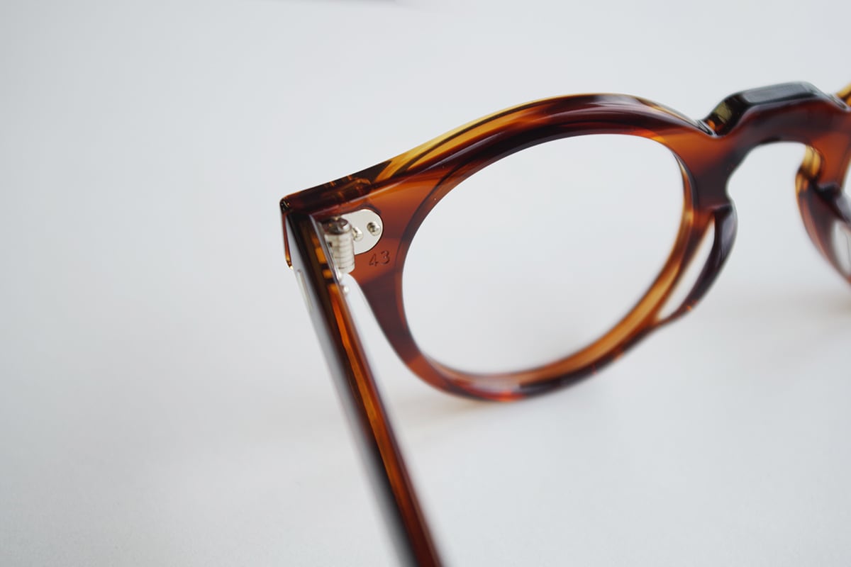 1950年頃、メガネには様々なサイズがありフロントとテンプルが別売でした。それぞれのサイズに合わせフロントとテンプルを選び組み合わせていた為、合い口を面一で仕上げることができませんでした。