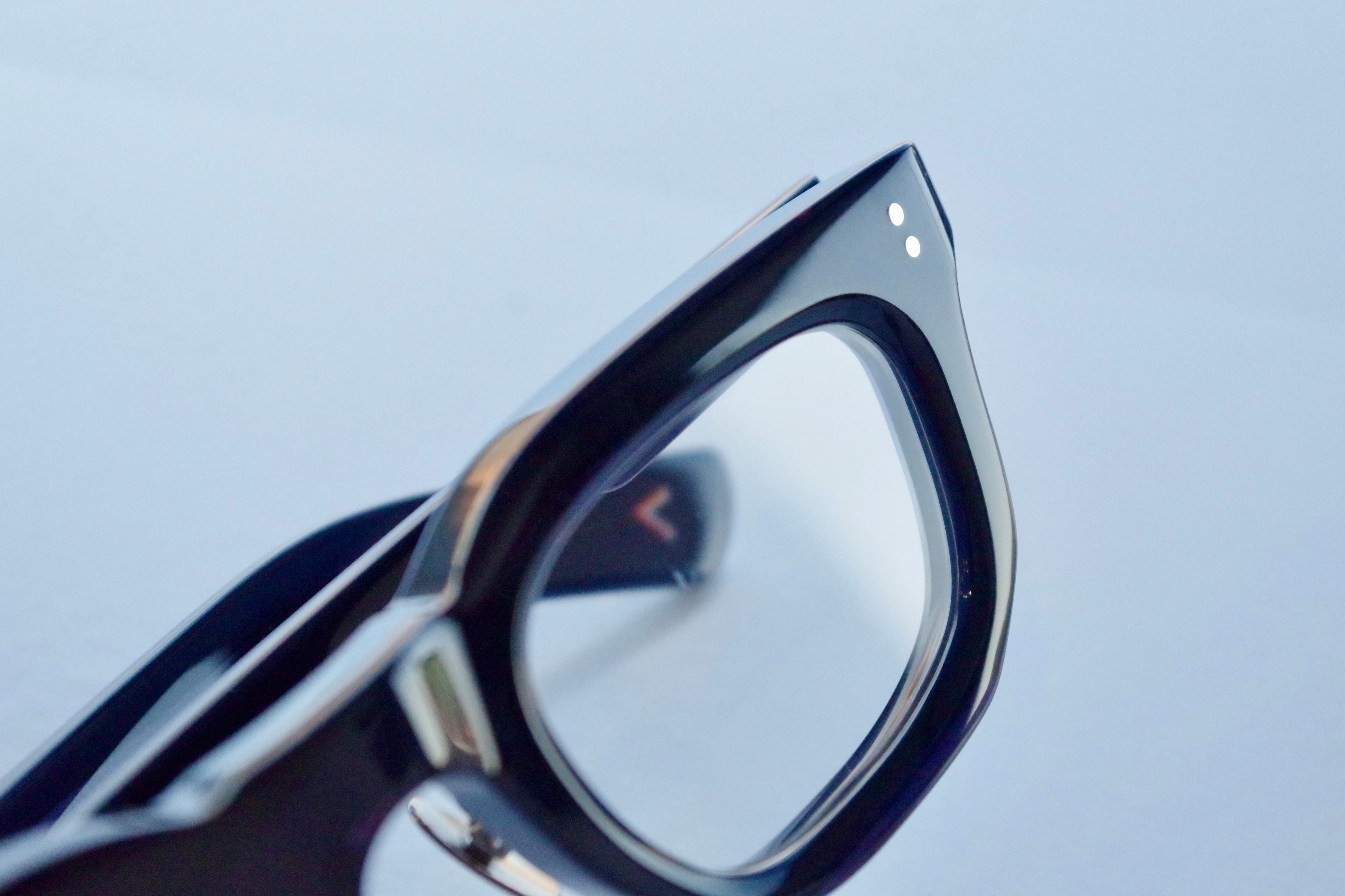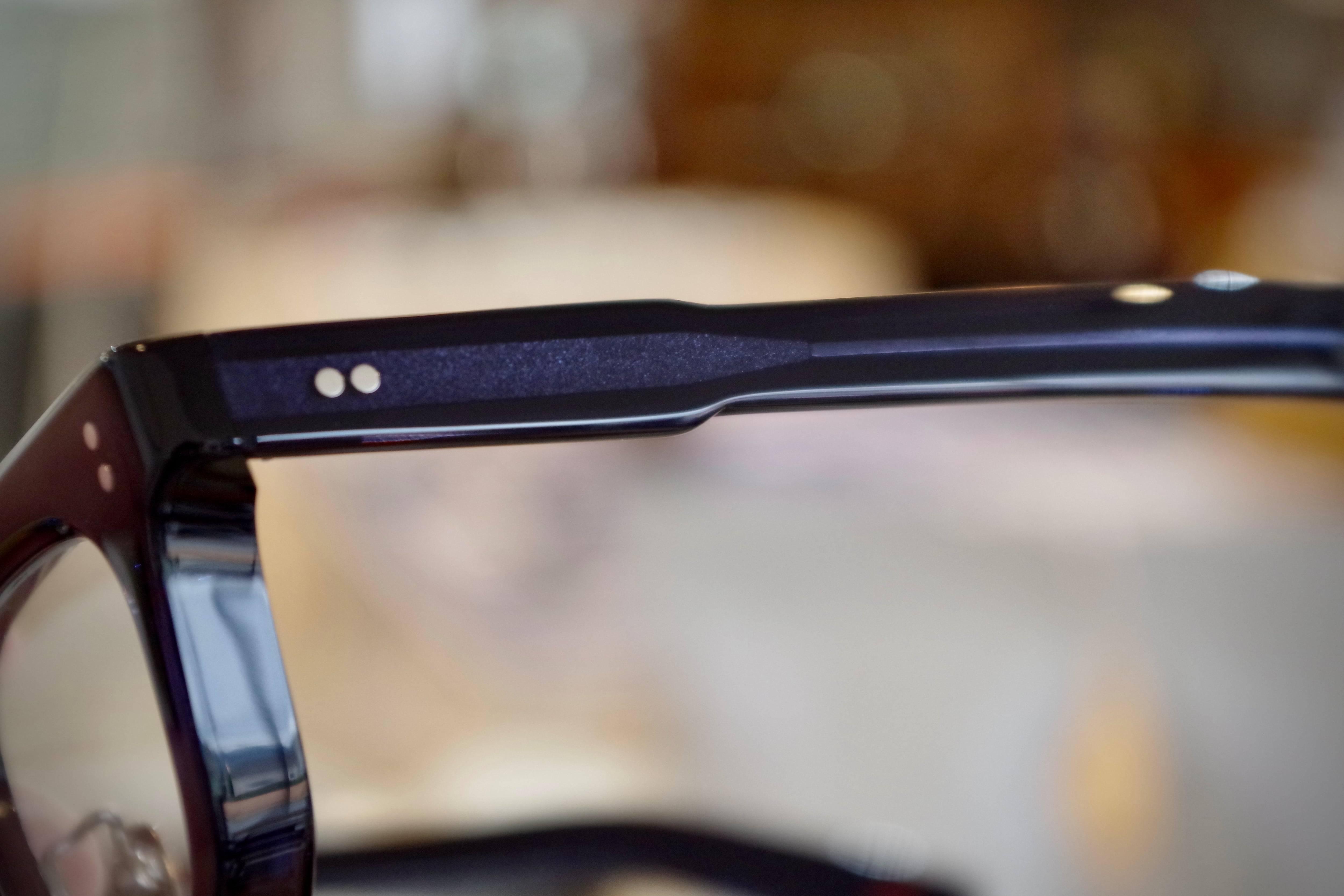 リムのテレビジョンカットやブロウラインのカッティング、8mmのフロントの生地厚などラグジュアリーかつモダンな雰囲気を感じる天地浅めのウェリントンシェイプ。