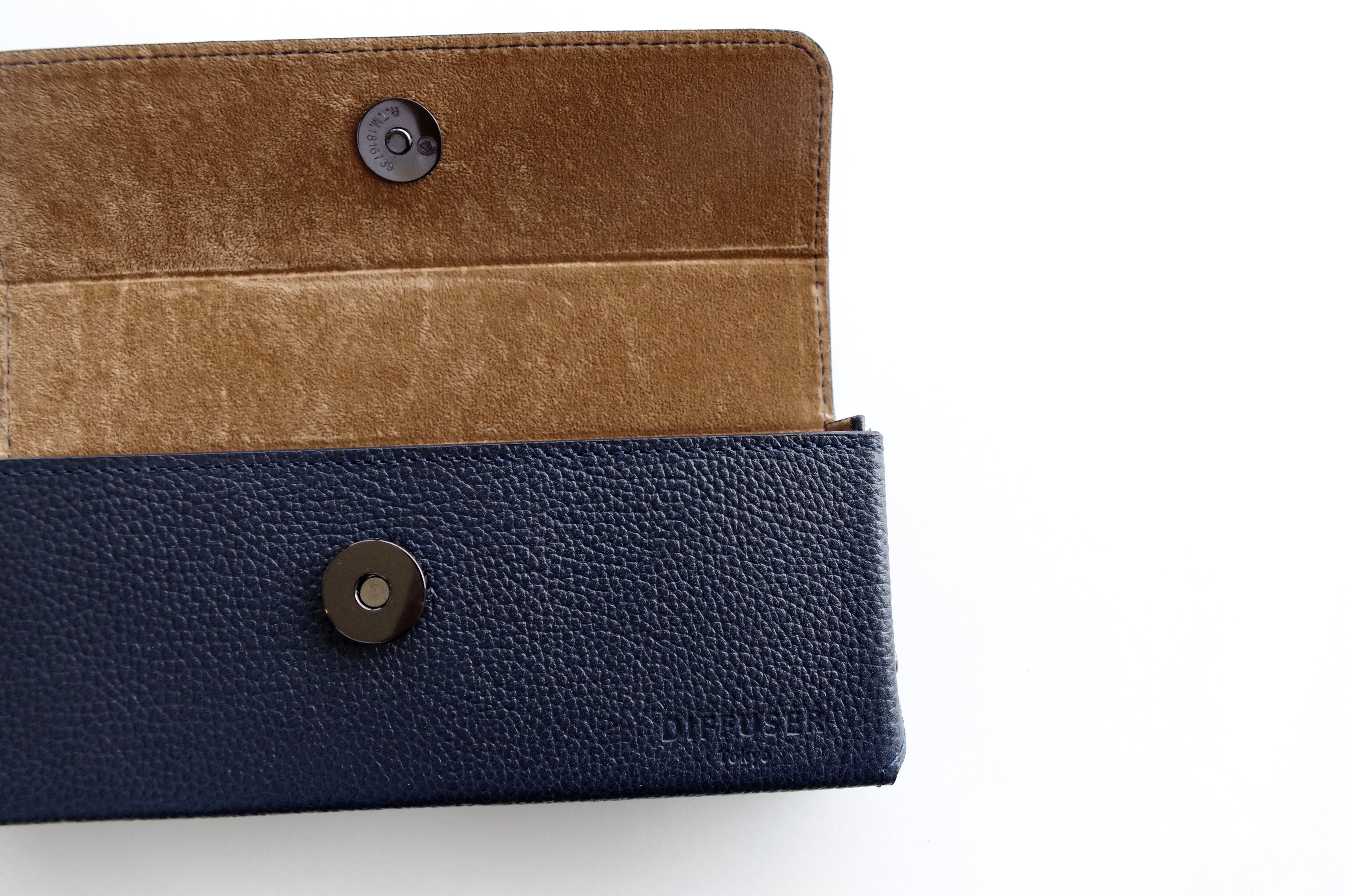 DIFFUSER : SHRINK LEATHER RECT EYEWEAR CASE / Navy(JF)