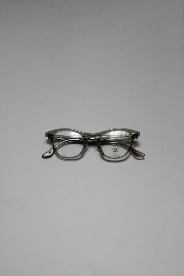 ■ブランド:JULIUS TART OPTICAL(ジュリアスタートオプティカル) ■生産国 :日本 ■モデル名:Leading Liz ■サイズ ・レンズ: 44mm ・ブリッジ: 22mm(レンズ間) 着用スタッフMJ 瞳孔間距離:62 ■カラー ・フレーム:Grey Crystal 2 ■素 材 ・フレーム:アセテート ■付属品 :レザーケース・クリーナークロス・ボックス ■コメント: 「ブランド」 JULIUS TART OPTICALは1950年代初頭に創業したタート・オプティカル・エンタープライズ社の創立者であるジュリアス・タート氏の意思を継ぐブランドとしてジュリアス・タート氏の甥のリチャード・タート氏と共に新規に創設したブランドです。 リチャード氏はタート・オプティカル社のファクトリーやマーケティングに関わった実績を持ち、数多くの資料を保有し、唯一ジュリアス氏の意思を継ぐ存在となります。 「フレーム」 Vintage市場でもちらほら見かけますね。JTOにもあるんです。フォックスシェイプ。 44-22のサイズ感でこのシェイプですと女性向けかと思われますが男性もかけていただけます。 なんなら知人にこれのブロータイプをかけている男性がおりまして。 すんごいハマり具合に感化されて入荷した次第でして。 起源は30年代、アメリカの女性たちの間でブームとなったのはやはり眼鏡の黄金期50〜60年代。 どちらも大きな戦争後の華やかさを取り戻しつつある素敵な時代。そこに思いを馳せる。 眼鏡がそんな道具にもなりうると思うとなんだか誇らしいですね。 生地からオリジナルで作成しており、他のブランドには無い独特なヴィンテージの雰囲気を忠実に再現しております。 1950年頃、メガネには様々なサイズがありフロントとテンプルが別売でした。それぞれのサイズに合わせフロントとテンプルを選び組み合わせていた為、合い口を面一で仕上げることができませんでした。 日本では乗せ智と呼ばれる技法でそのずれた合い口を忠実に再現されています。 その為、フロント裏面にサイズ表記がされていたのですが、そちらも細かく再現されています。
